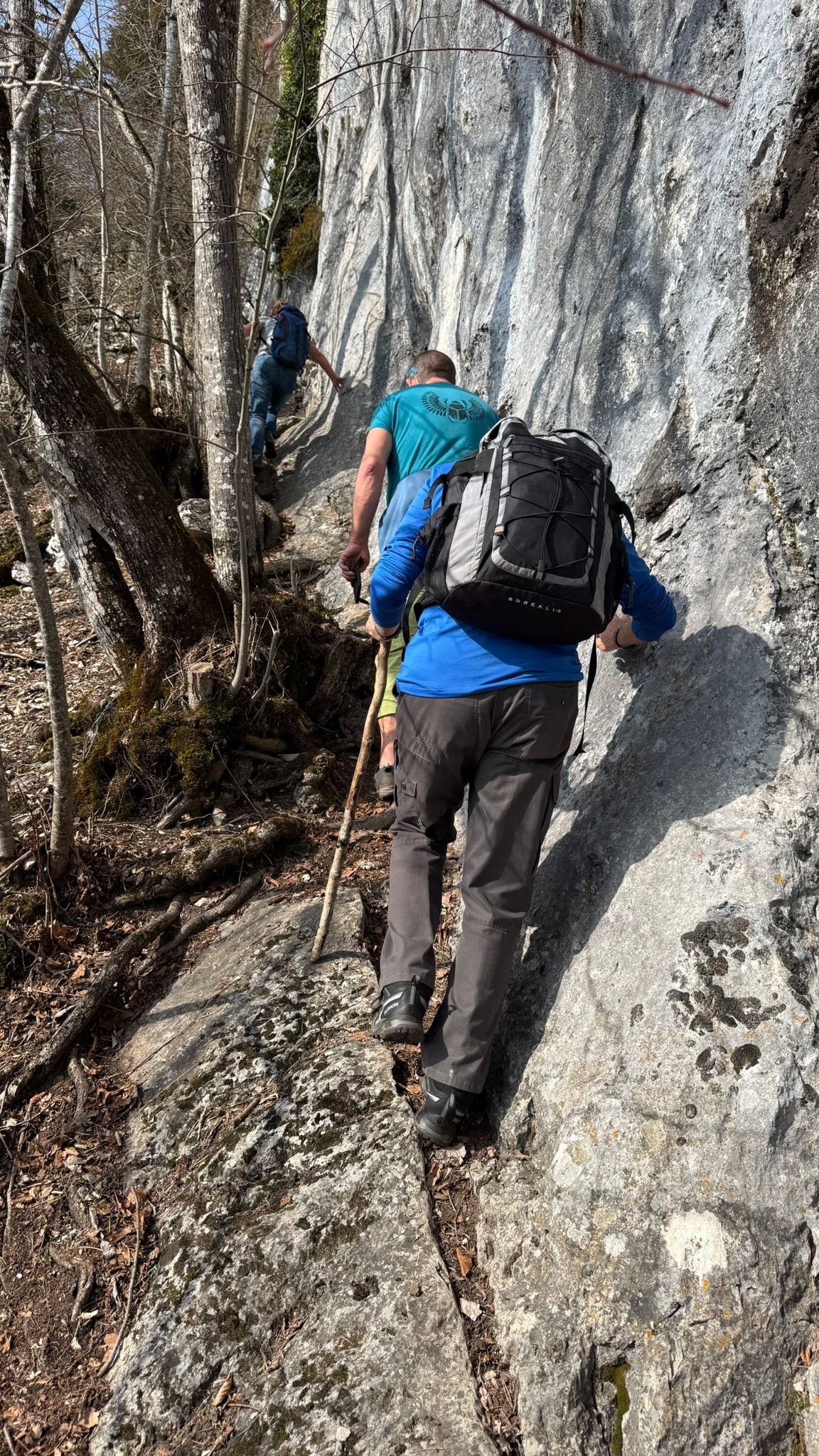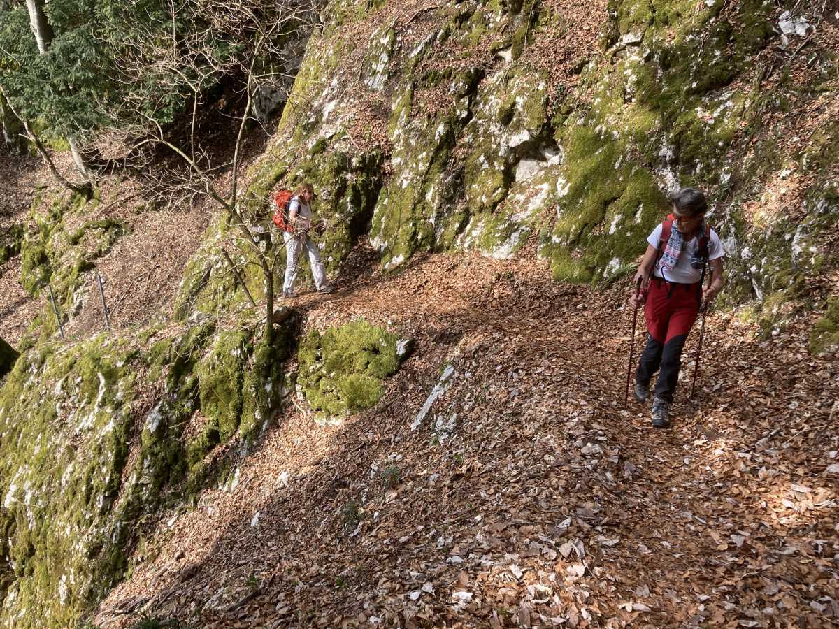 Après votation (pas celle du « 200 francs ça suffit ») nous choisissons le petit sentier T3. Un randonneur qui monte avec son chien nous assure que c’est le plus joli sentier du canton de Soleure. Nous avons fait le bon choix, comme le peuple suisse ce dimanche. Nous passons encore sous un haut-lieu de l’escalade de la région et arrivons les cinq ensemble et heureux à la voiture.