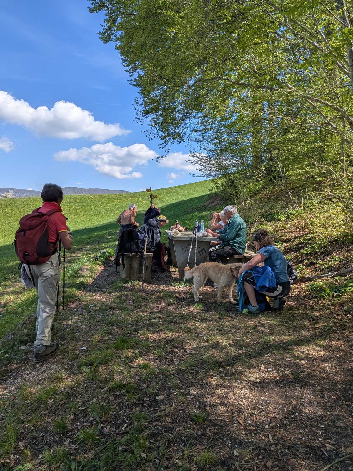 8 clubistes et 1 ex-clubiste (on ne sait pas encore si elle regrette son come-back) se sont retrouvés à Balsthal pour boire un café avant de partir en randonnée. Évidemment, parce que le destin a le sens de l’humour, 3 restos étaient fermés. Heureusement, une boulangerie héroïque a accepté de recueillir cette bande de marcheurs assoiffés. 🥐☕