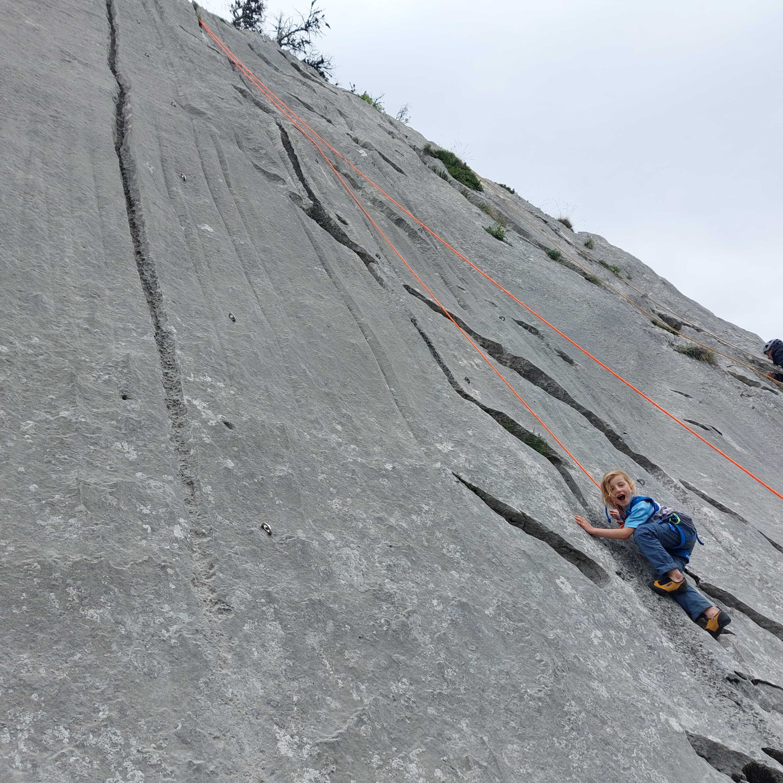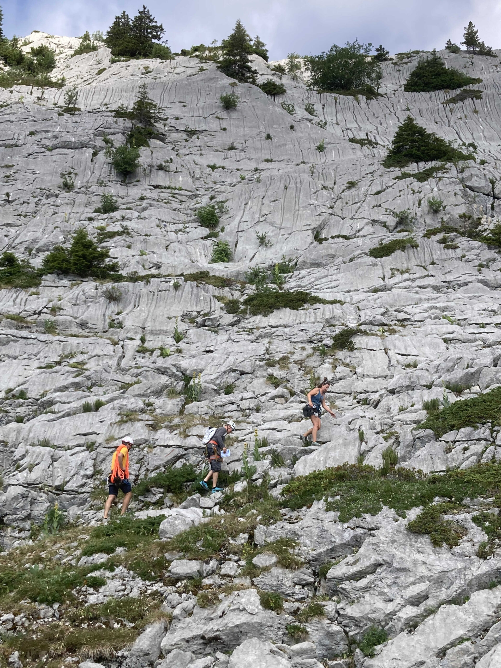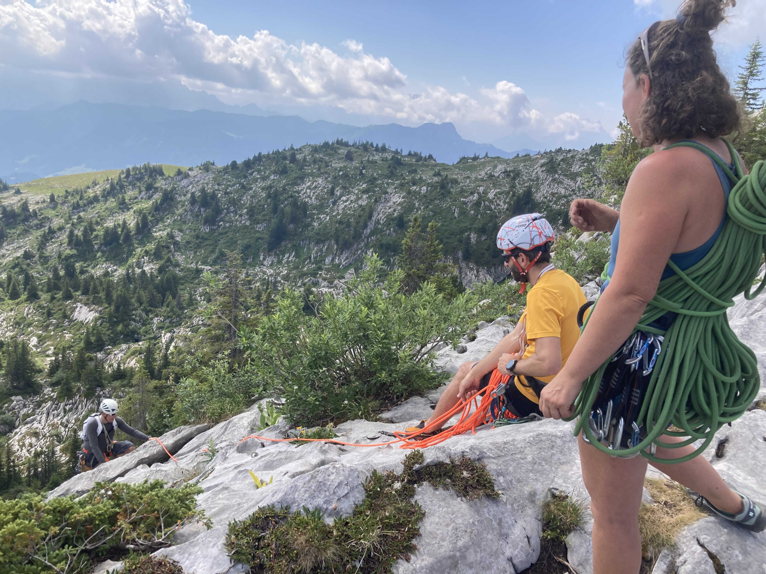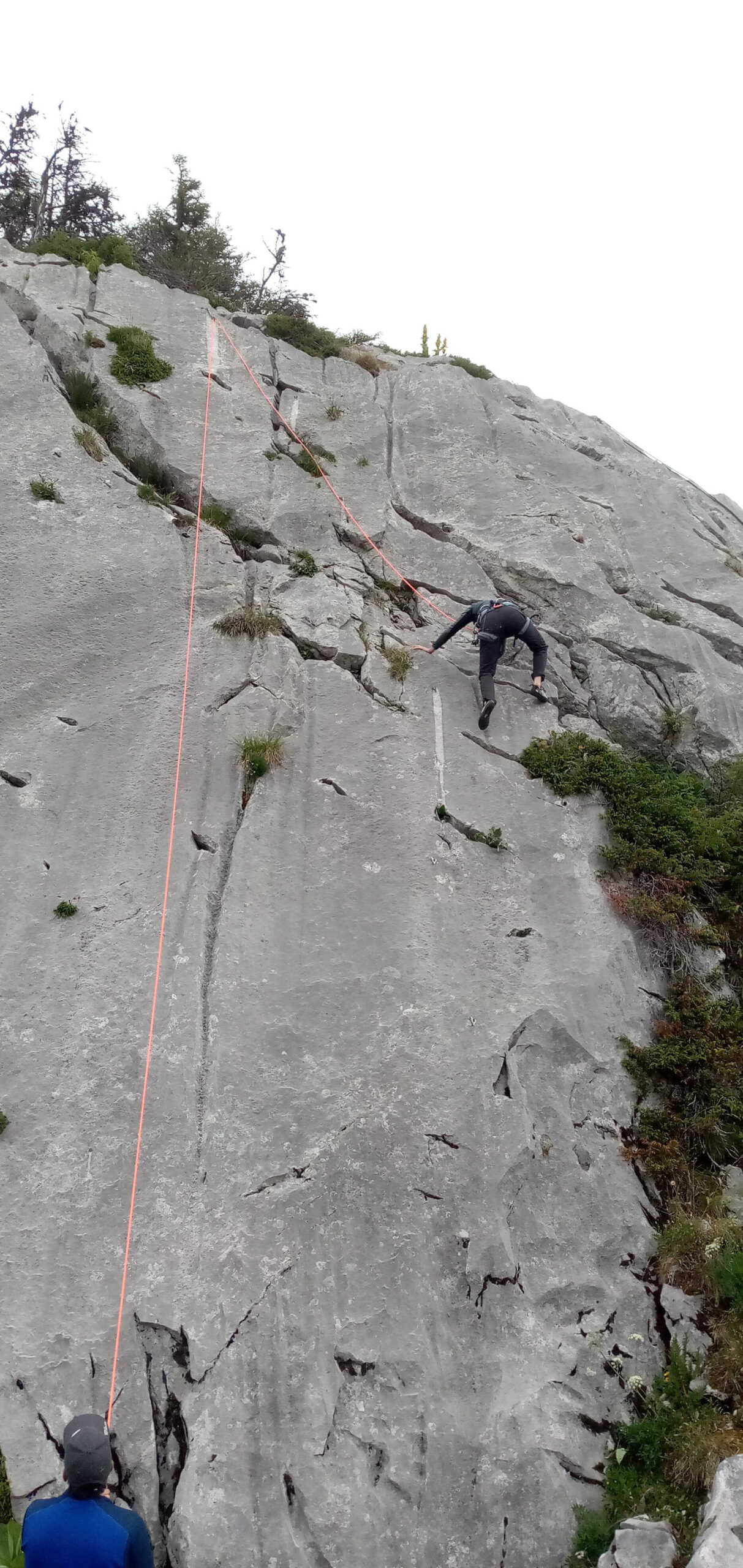 Le pique-nique justement ! Un moment sacré au pied de la paroi, où même les fromages se sentaient un peu plus courageux avant le retour à la verticale. Ressourcés, nous sommes repartis à l’assaut jusqu’à ce que la pluie, jalouse de notre enthousiasme, décide de manifester sa présence… avec cette douce délicatesse qu’on lui connaît (« coucou les grimpeurs, c’est l’heure de rentrer ! »).