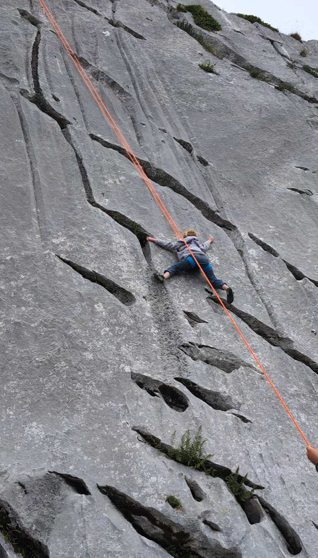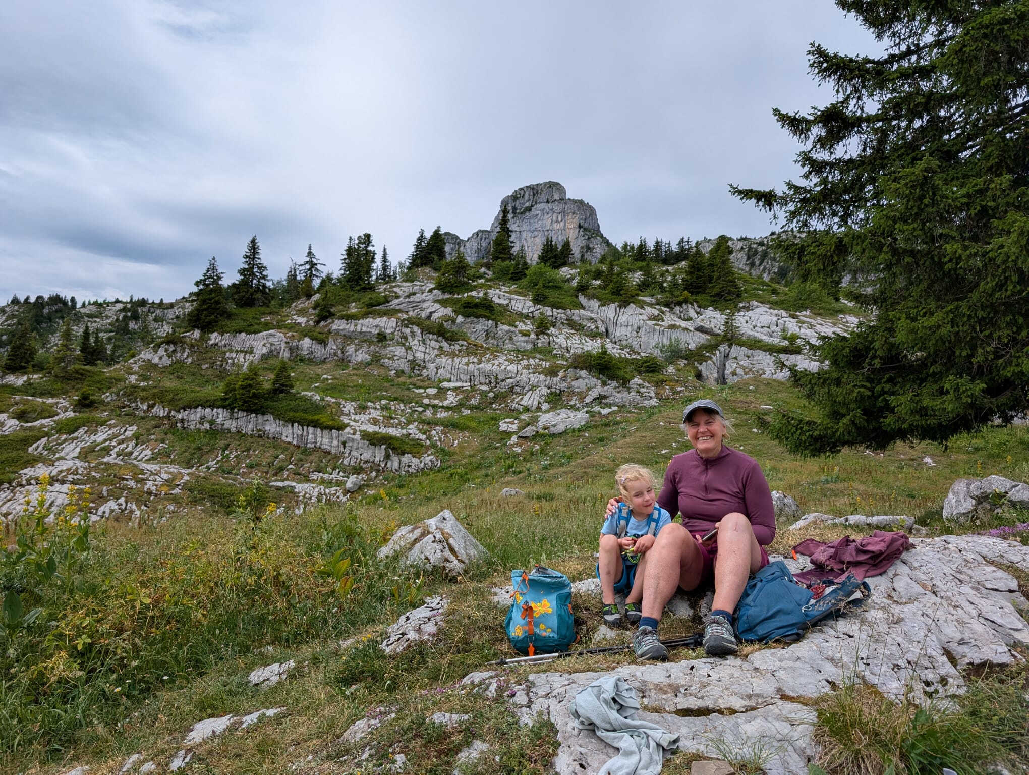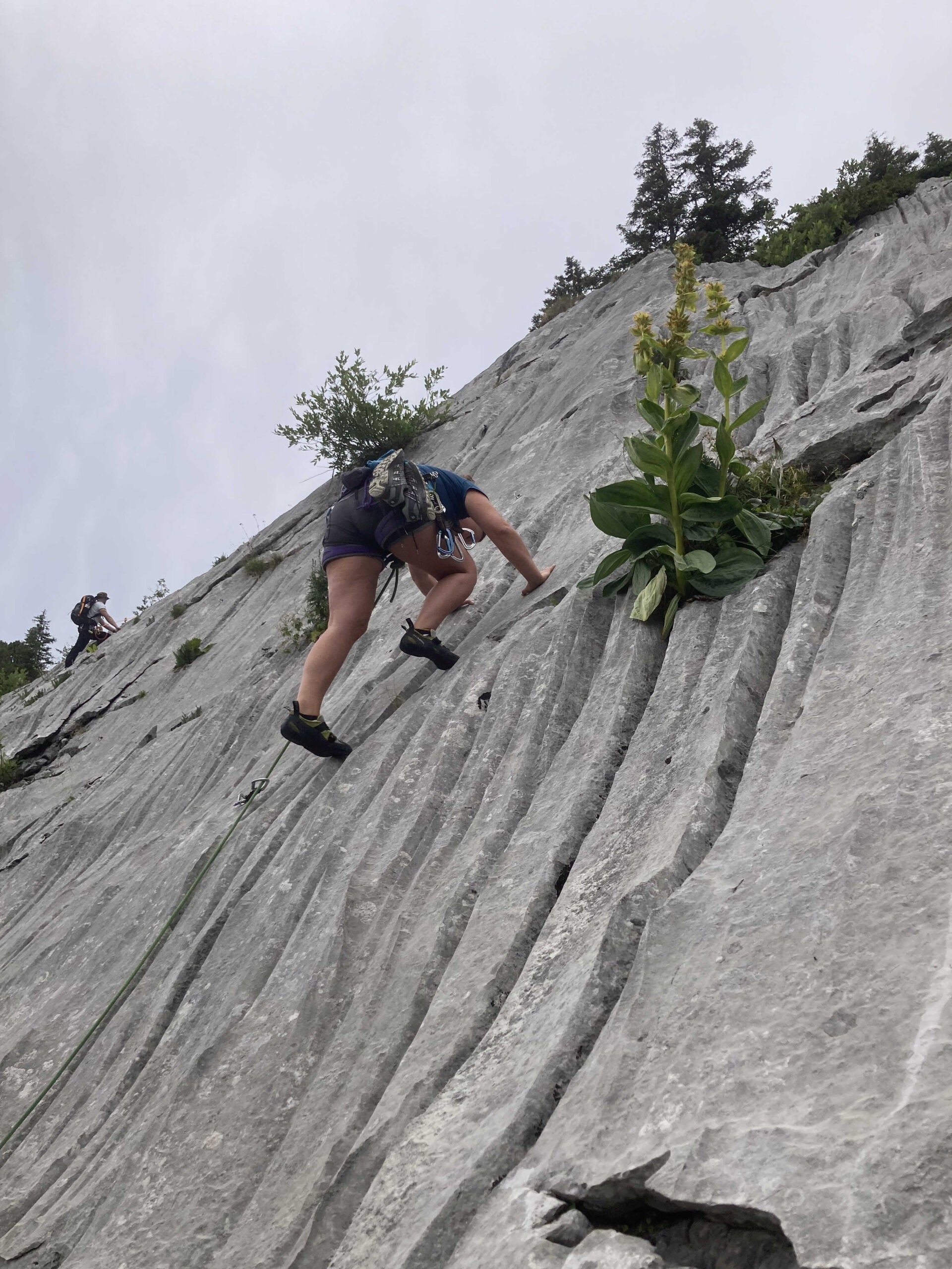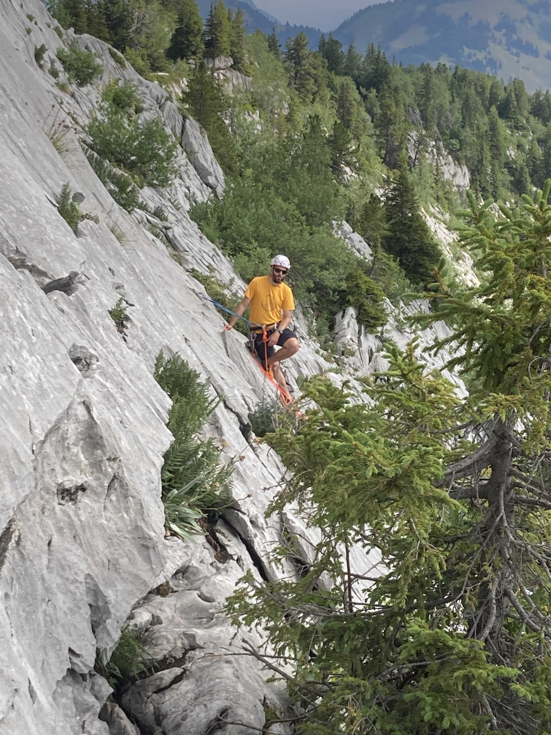 Le pique-nique justement ! Un moment sacré au pied de la paroi, où même les fromages se sentaient un peu plus courageux avant le retour à la verticale. Ressourcés, nous sommes repartis à l’assaut jusqu’à ce que la pluie, jalouse de notre enthousiasme, décide de manifester sa présence… avec cette douce délicatesse qu’on lui connaît (« coucou les grimpeurs, c’est l’heure de rentrer ! »).