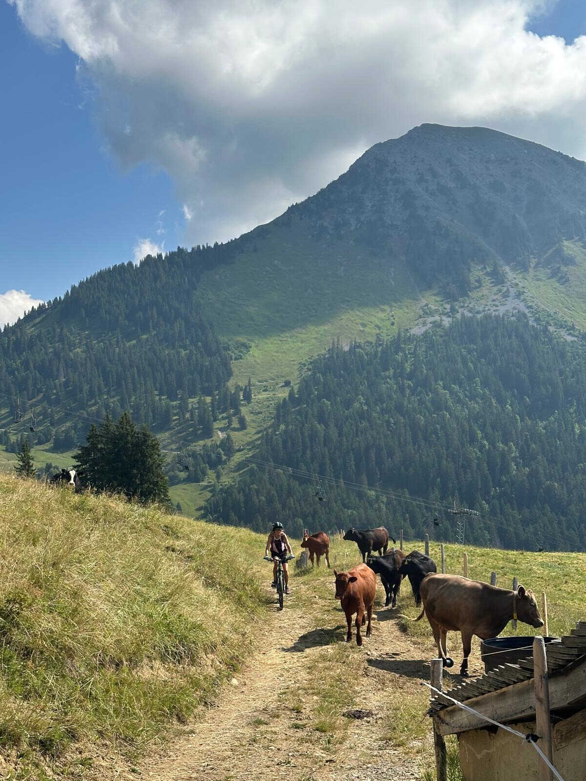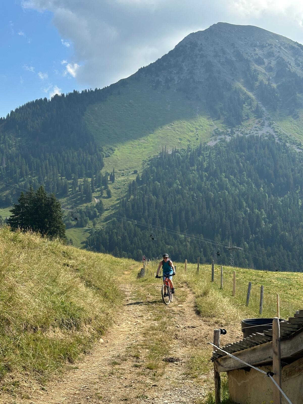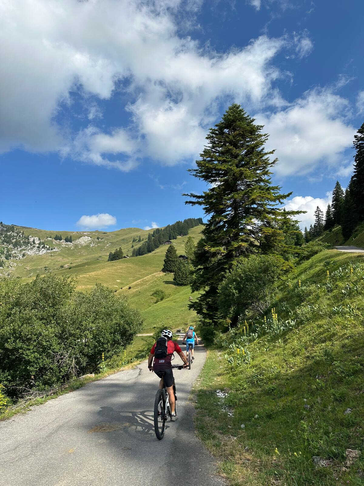 Le 5 juillet, le petit groupe VTT composé de Marlyse, Pierre, Céline et Dan quittent la cabane avec comme objectif le lac de Mayen.
