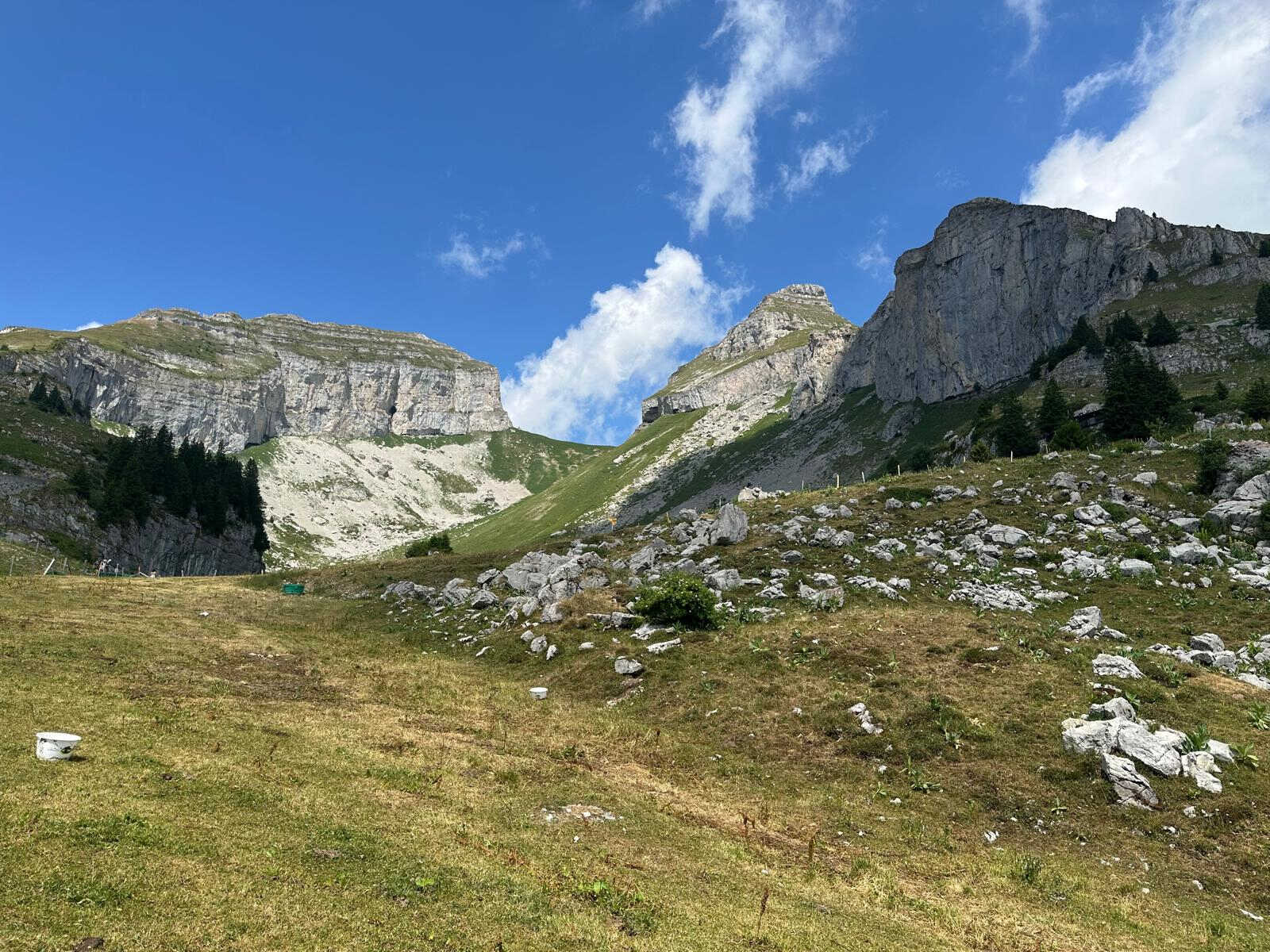Enchanté.e.s de notre expérience de vacances clubistiques à Braunwald, une équipe de motivé.e.s est partante pour 3 nuits près de la Pierre du Moëllé, Préalpes Vaudoises, commune d’Ormont-Dessous. Cette région, proche du lac de l’Hongrin est bien connue par les militaires : on y trouve des forts, des fortins, une route pour les chars et un baraquement militaire. D’ailleurs la Pierre du Moëllé, gros rocher naturel comme tombé du ciel en haut du col, a été excavée et était équipée à l’intérieur de mitraillettes et de canons anti-char.