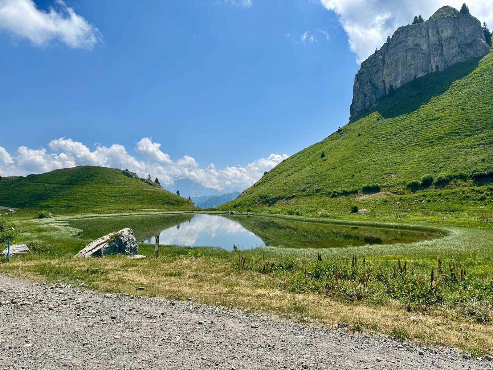Le 6 juillet, notre petite équipe s’est remise en route pour une nouvelle aventure. Nous avons quitté la cabane pour rejoindre le col des Mosses. Nous quittons rapidement le col de la Pierre du Moëllé pour prendre un bout de l’itinéraire 1 jusqu’au croisement du 982, Les Mosses Bike.