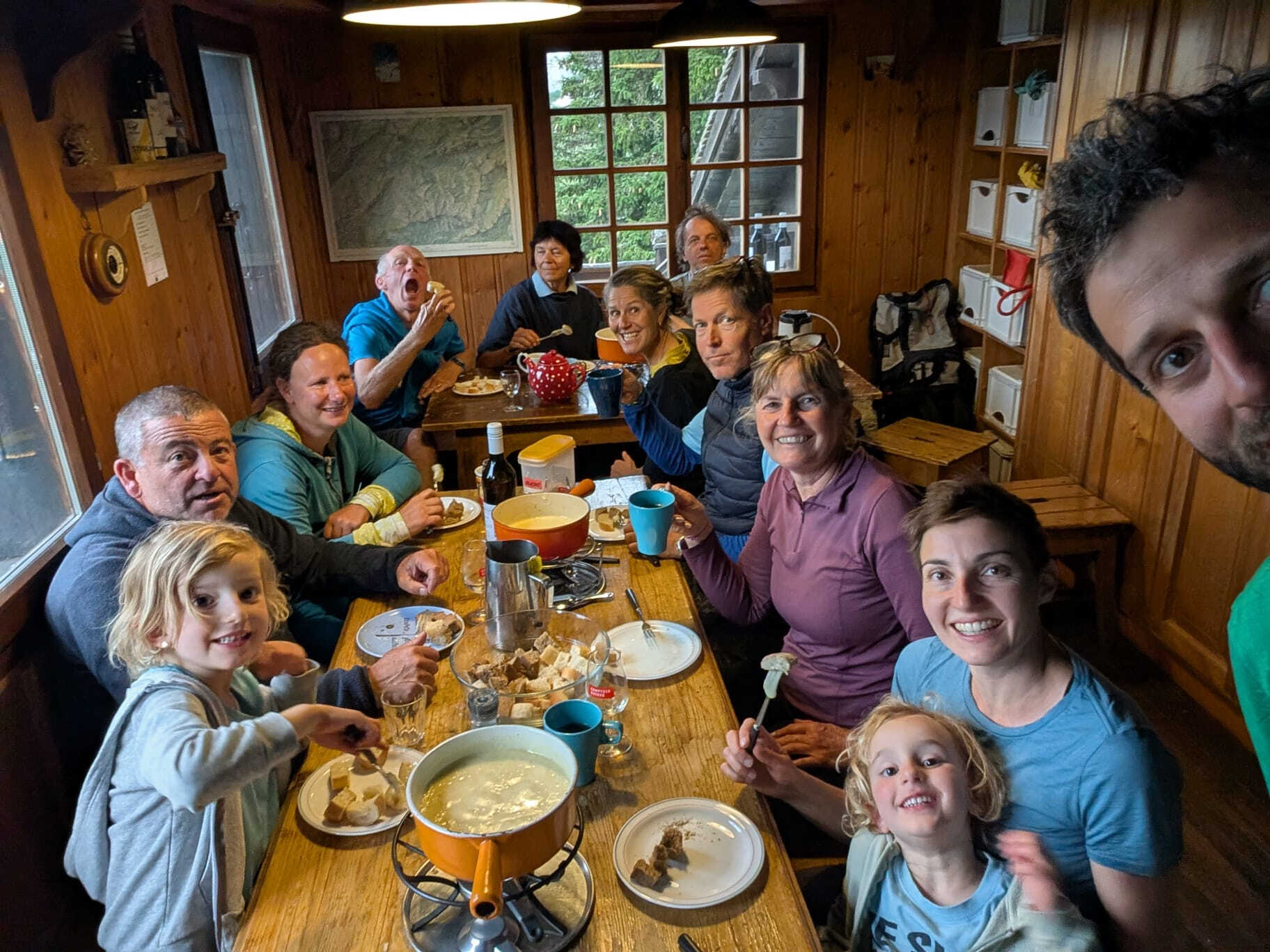 La dernière pente s’effectue avec moins de gouttes de sueur que le jour précédent…ce parcours d’une longueur de 24 km pour un dénivelé positif de 804 m s’achève autour d’une bonne bière à la cabane, puis d’un moment convivial autour d’une excellente fondue.